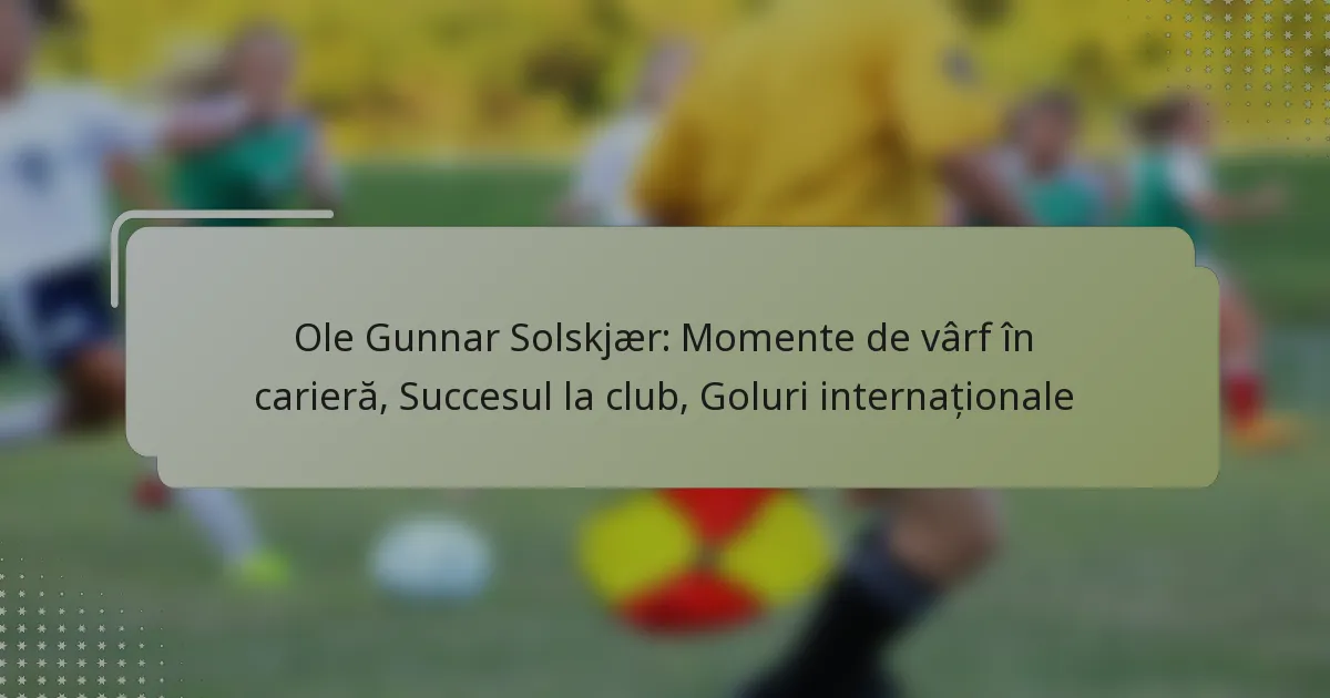 Ole Gunnar Solskjær este renumit pentru cariera sa impactantă ca jucător și antrenor, în special cu Manchester United. Momentele sale cheie includ goluri memorabile, trofee semnificative și o tranziție de succes în antrenorat, evidențiind influența sa asupra jocului.