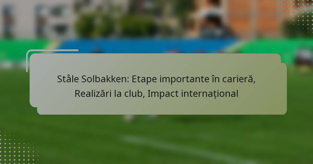 Ståle Solbakken a avut o carieră deosebită atât ca jucător, cât și ca antrenor, marcată de realizări semnificative în fotbalul de club și competițiile internaționale. Parcursul său include debuturi profesionale timpurii, momente notabile în cariera de jucător și o tranziție de succes în antrenorat, unde a câștigat recunoaștere pentru acumenul său tactic și abilitățile de lider.